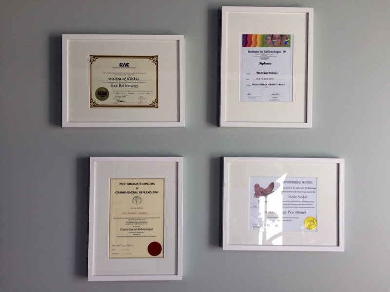 During her preparation to practice reflexology, Waltraud sought out the most respected reflexology practitioners for training and mentoring. As a result she was taught by world-leading reflexologists including Dr. Martine Faure-Alderson (England), the originator of cranio-sacral reflexology therapy; Hanne Marquardt (Germany), a leading global expert in reflexotherapy; Angela Sellens Drake (England), instructor for facial reflexology; Dr.Manzanares M.D. (Spain) and Dorthe Krogsgaard and Peter Lund Frandsen (Denmark), both world renowned authorities in reflexology.